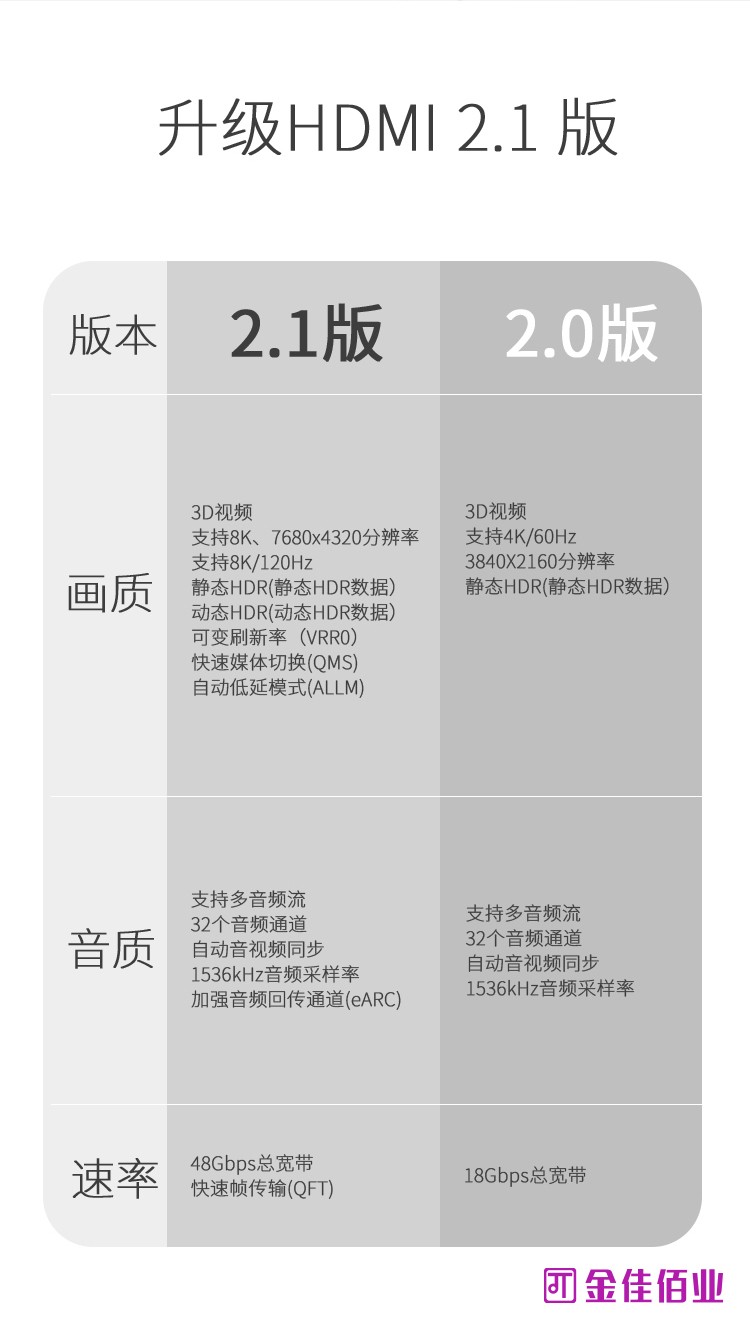 1.?HDMI2.1標(biāo)準(zhǔn):8K 120Hz 3D 4:4:4 48Gbps