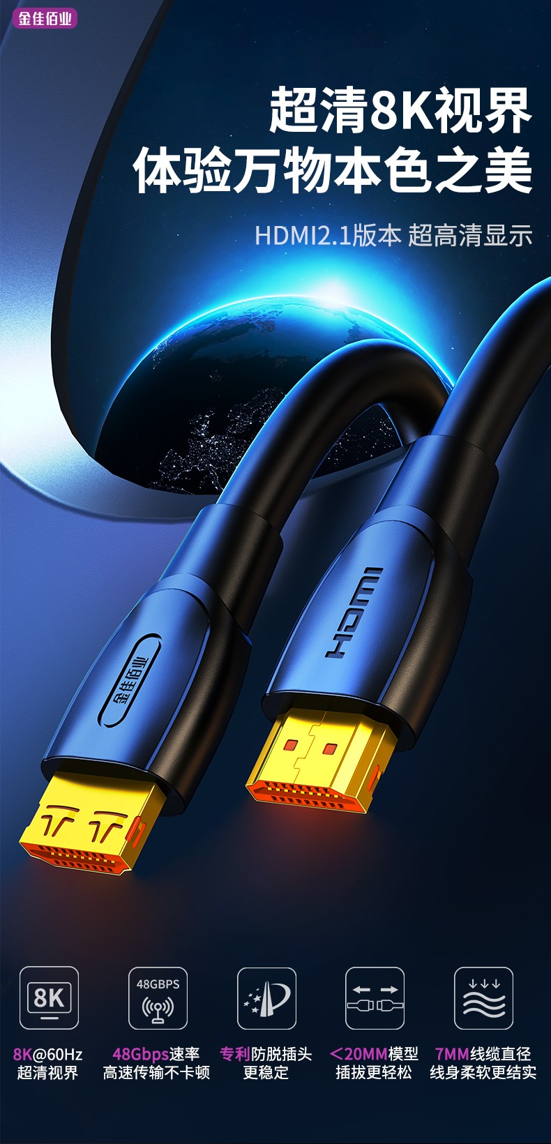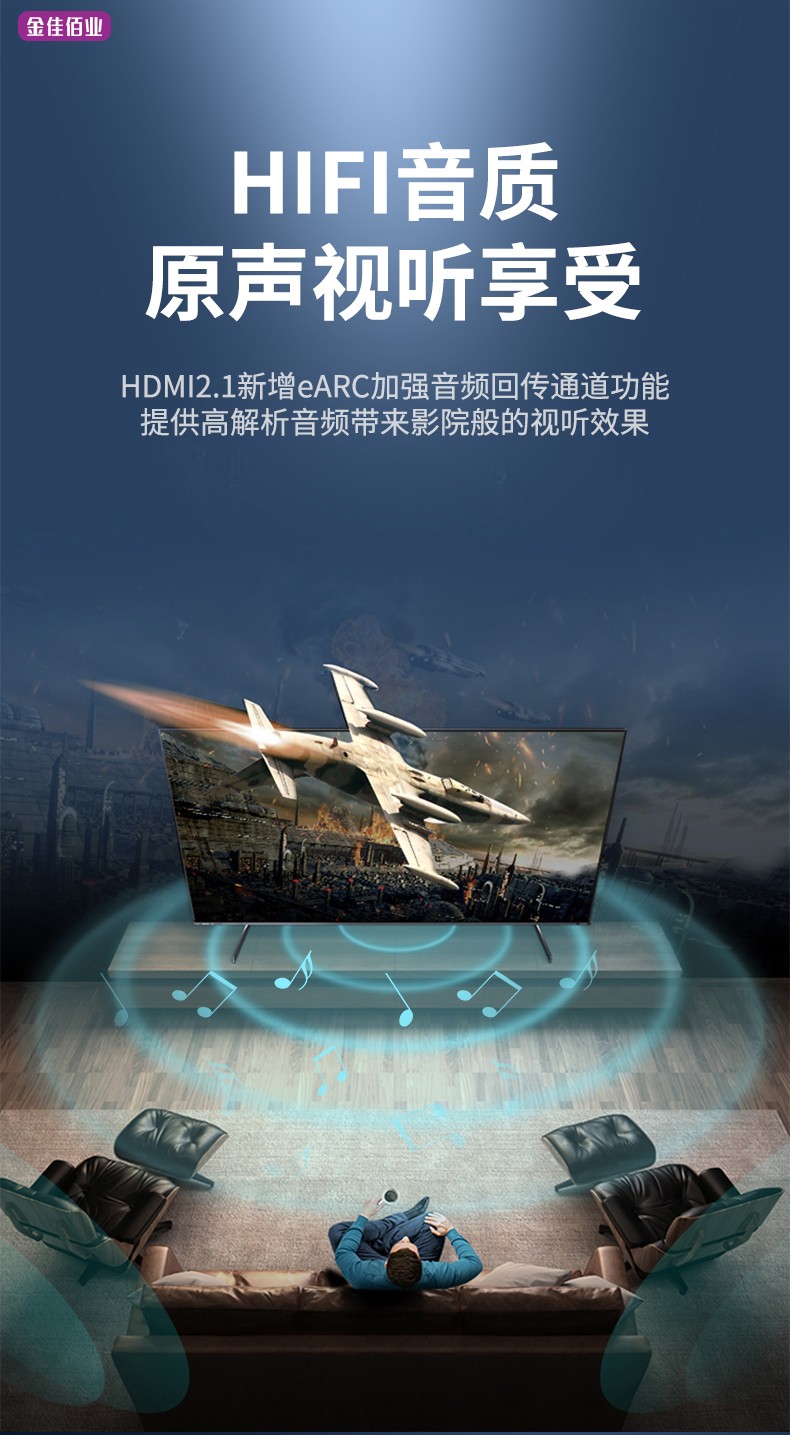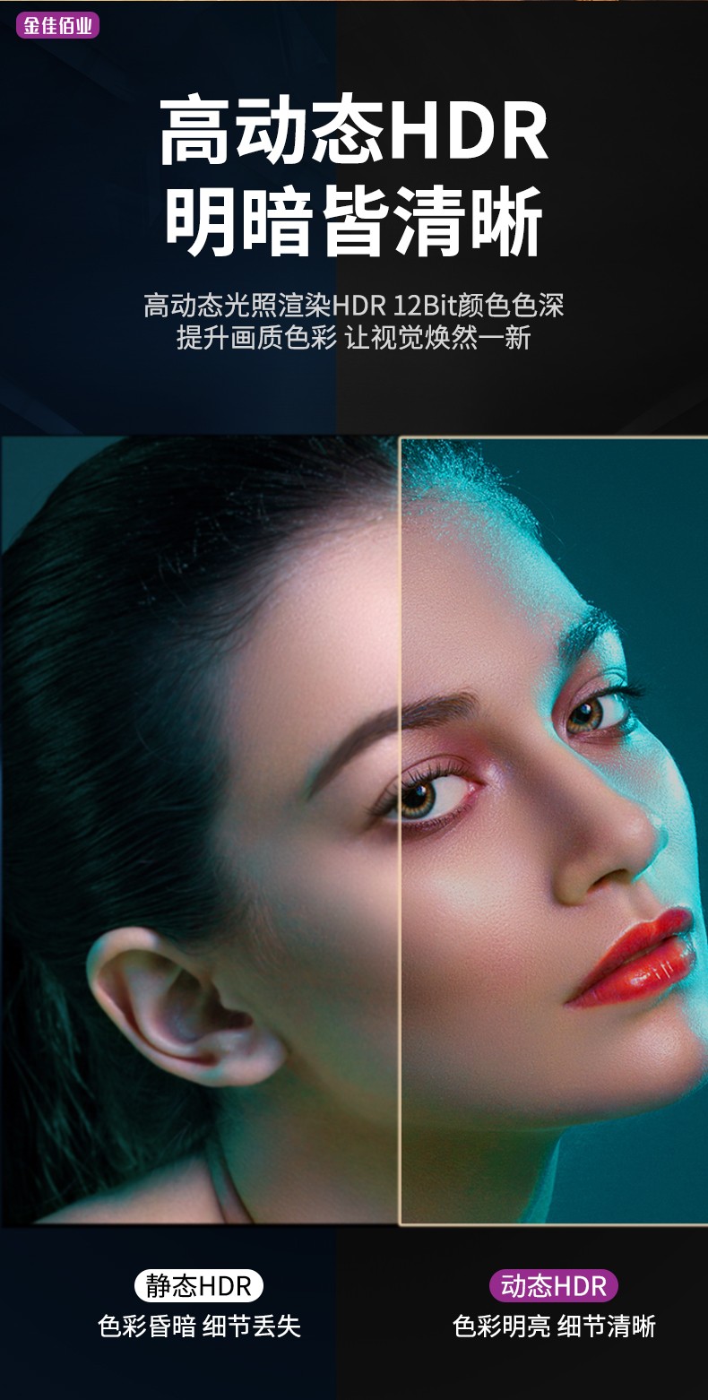 支持分辨率:8K/60Hz、4K/120Hz、2K/144Hz 3D 48Gbps