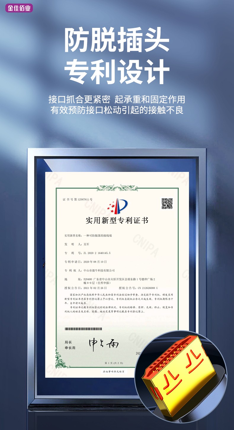 專利防脫插頭設(shè)計(jì) 杜絕接口松動引起的接觸不良