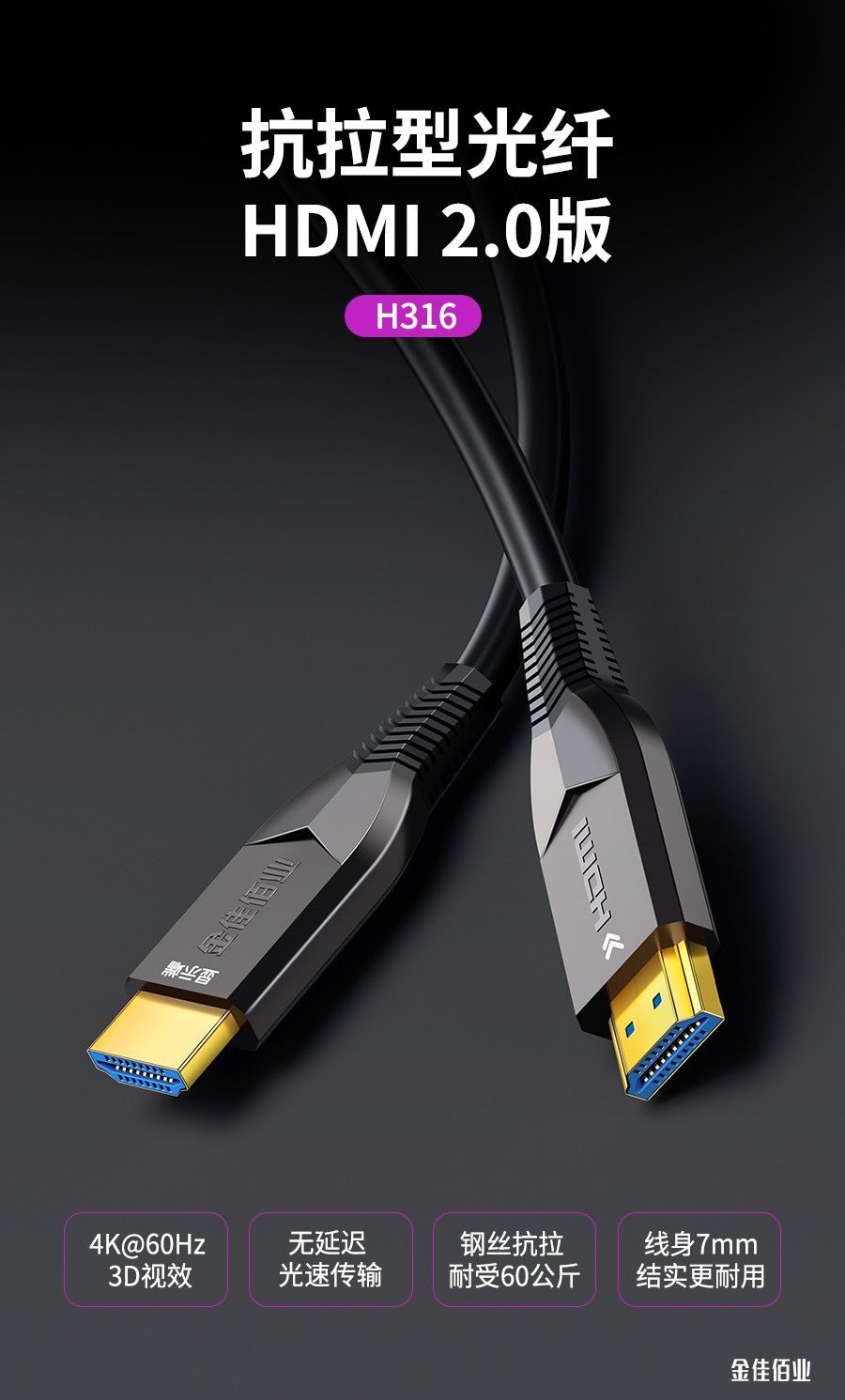 抗拉光纖HDMI2.0 抗拉強(qiáng)度高達(dá)60斤