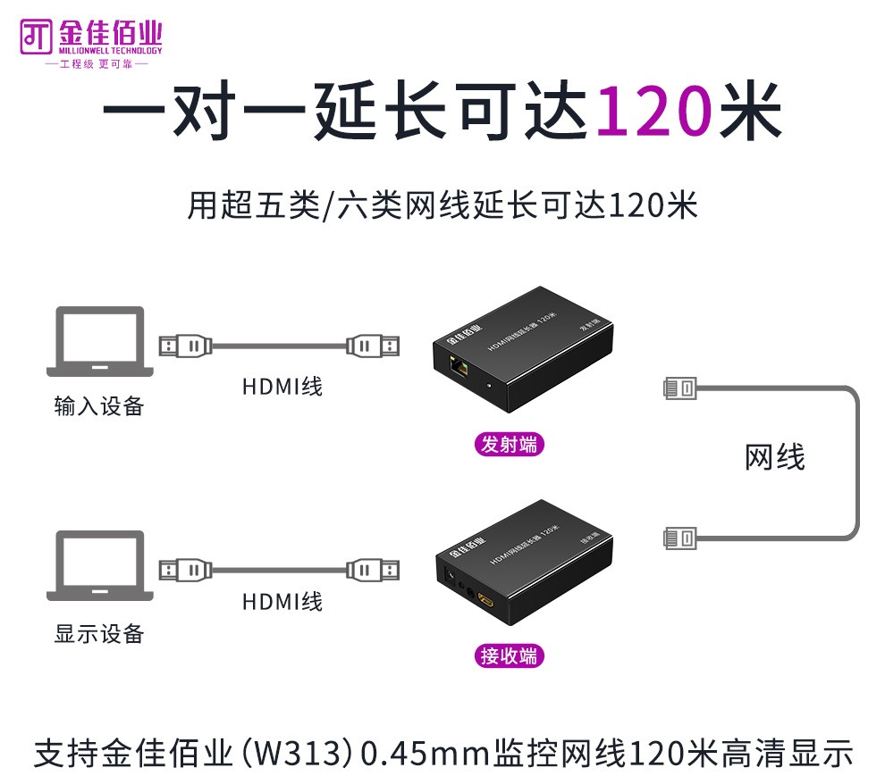 實測支持金佳W313(0.45監(jiān)控網(wǎng)線)120米高清顯示;