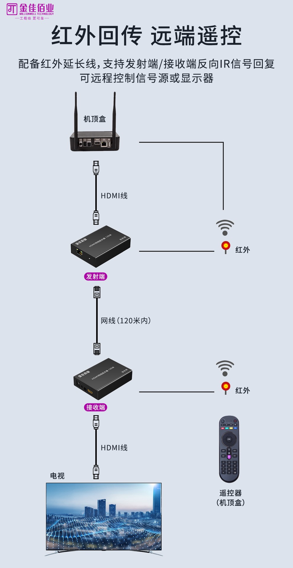 接收端接:顯示器、戶外大屏、投影儀等;接光纖HDMI的情況下:信號源(Source)接接收端,顯示端(Display)接顯示器。