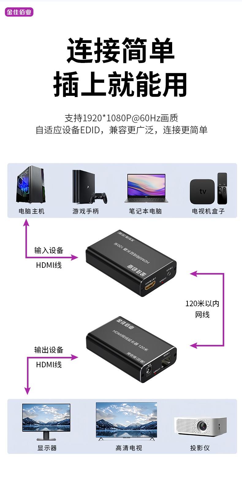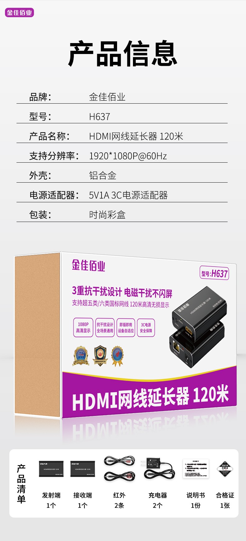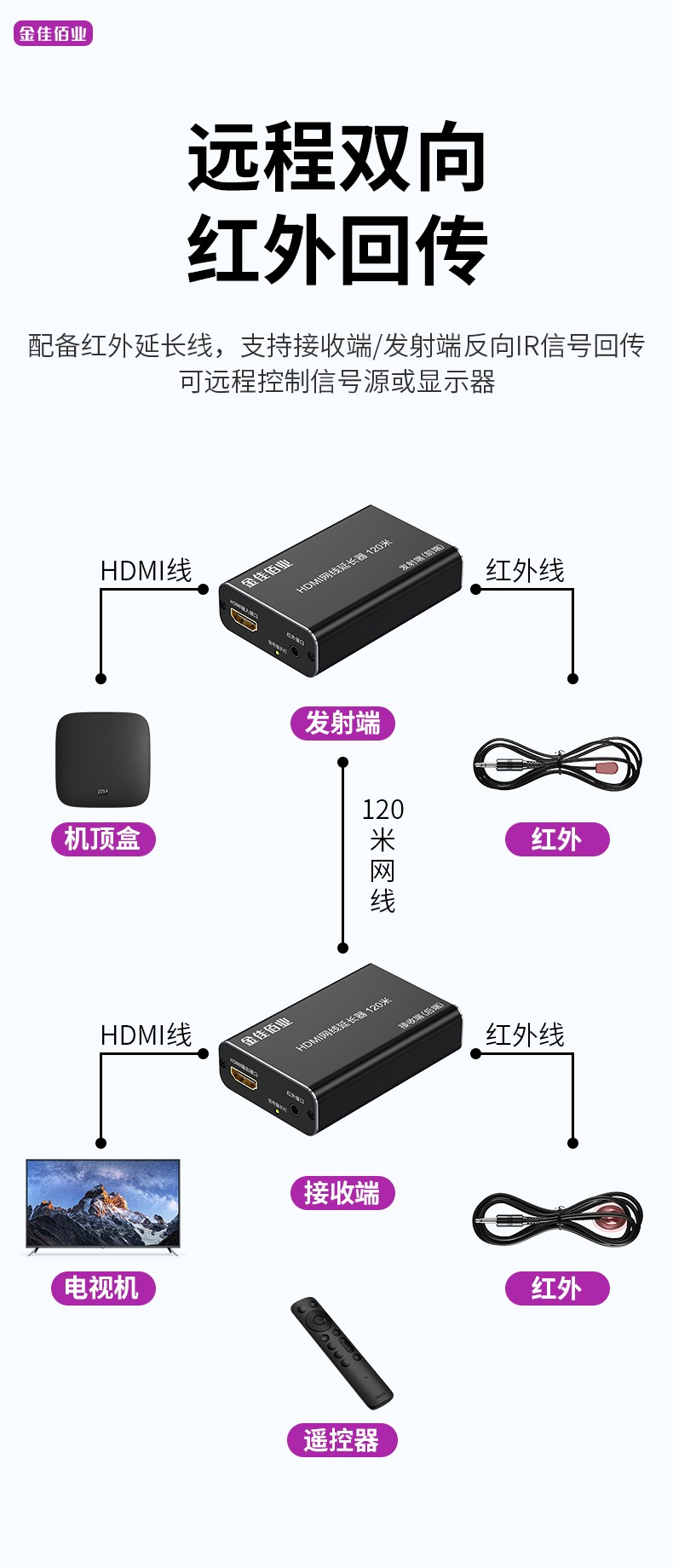 支持超五類(lèi)/六類(lèi)及以上規(guī)格120米 高清顯示