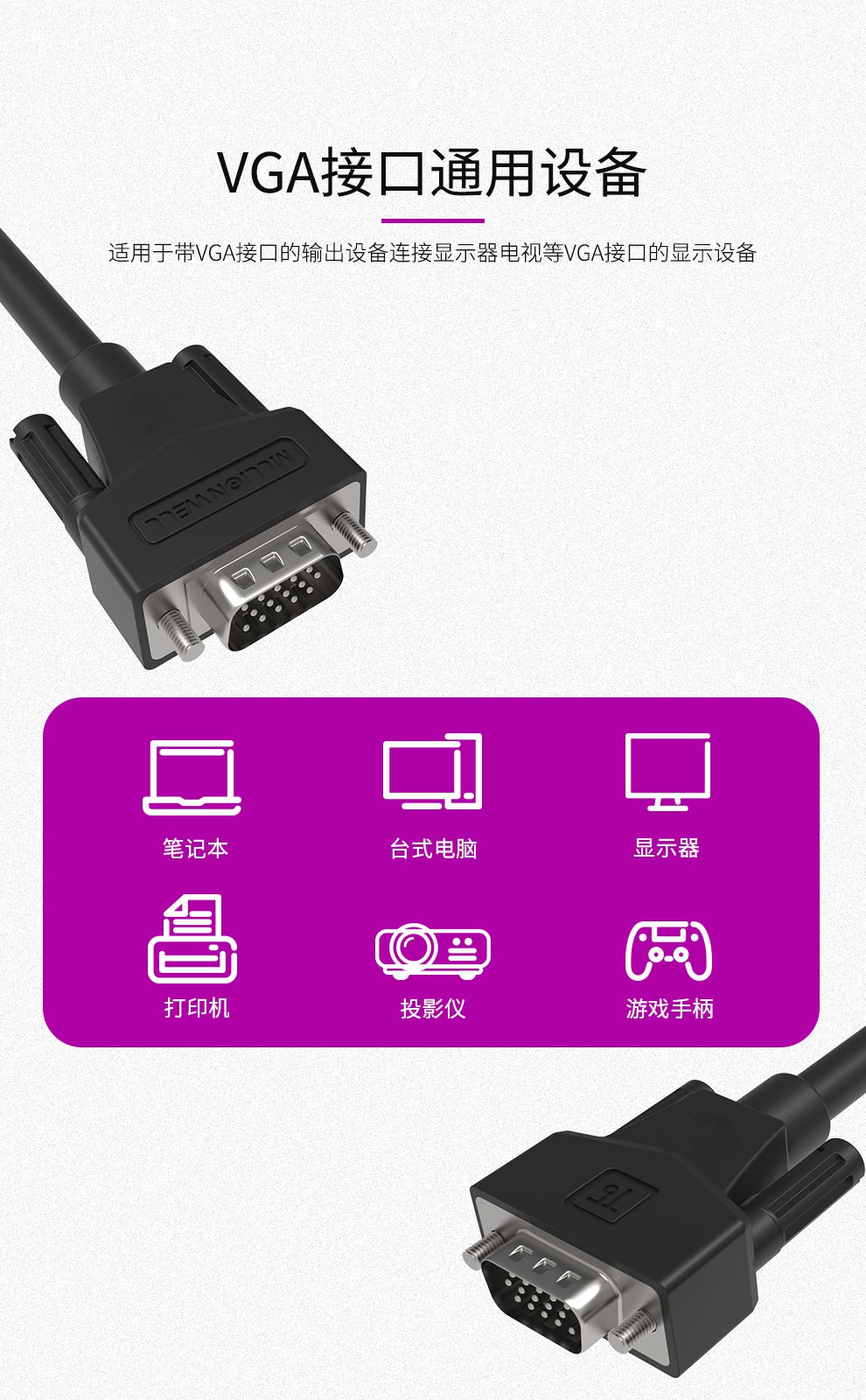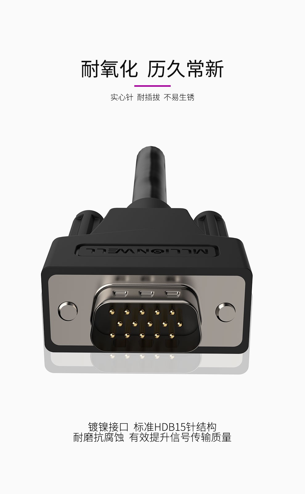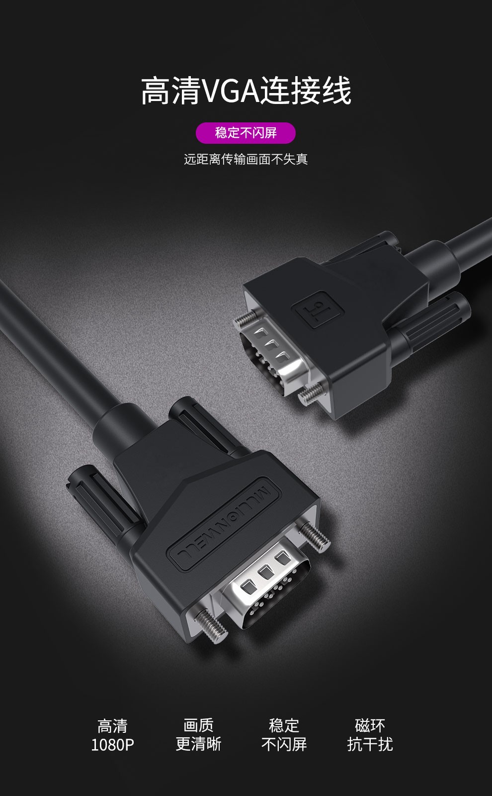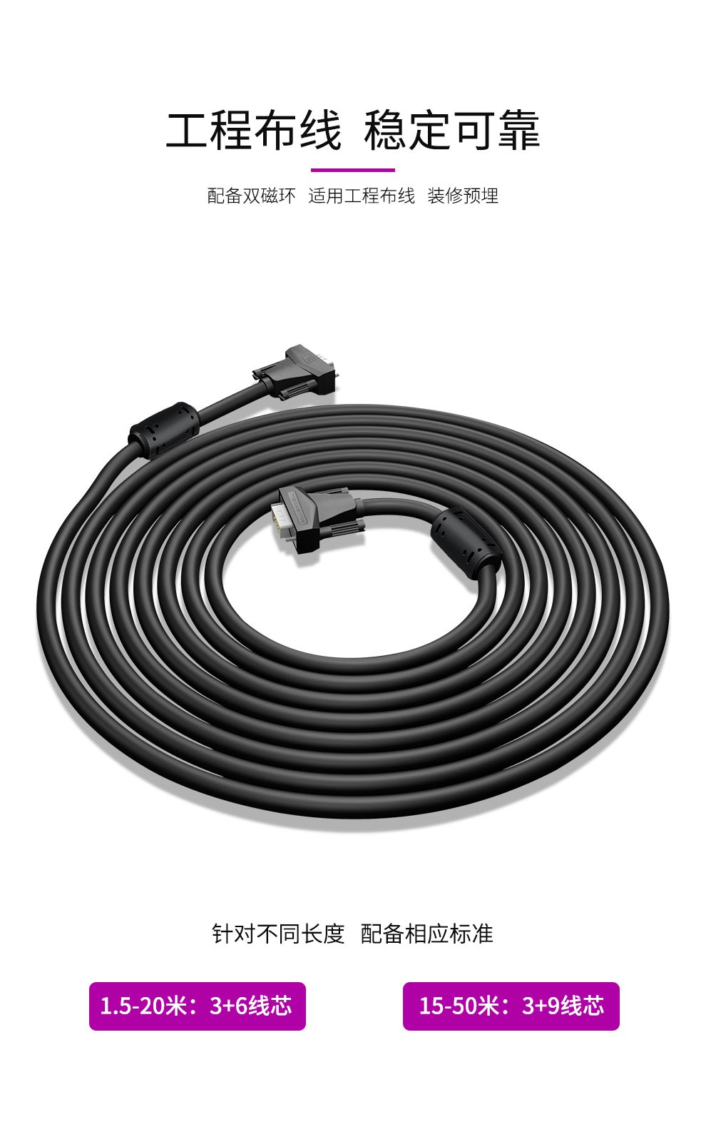 VGA3+9線 公對公 雙磁環(huán) 實(shí)心針