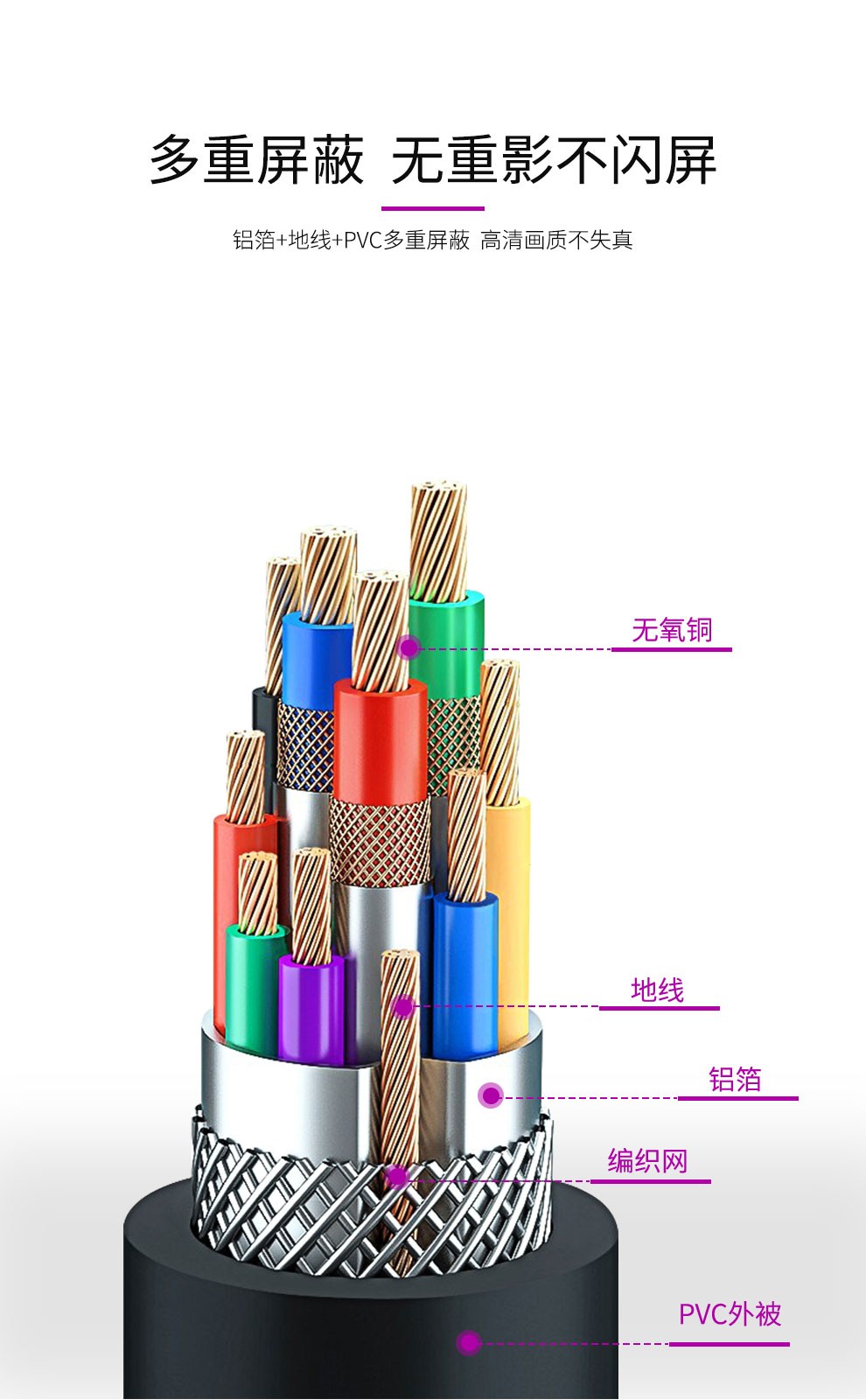 無氧銅線芯 鋁箔+鋁編多重屏蔽