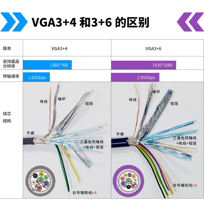 4. VGA3+4標(biāo)準(zhǔn)結(jié)構(gòu),無氧銅