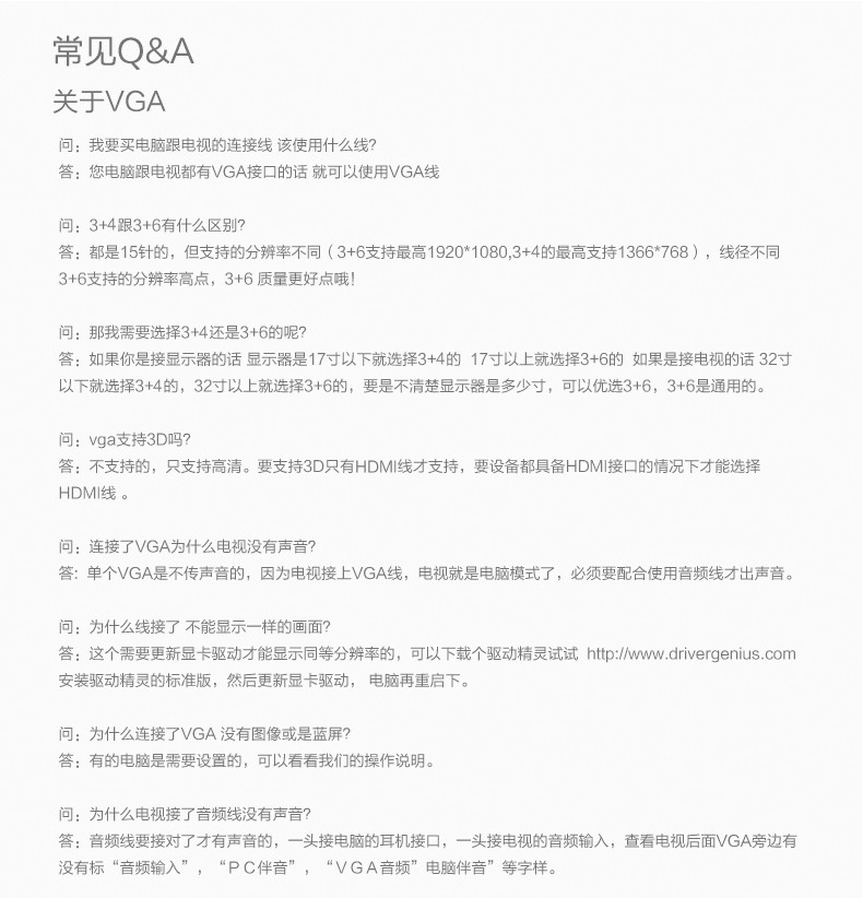 答:1.接觸不良 可跟換線材或者跟換測試設(shè)備 來排除是否是接觸不良 或者線材和設(shè)備的接口有損壞的可能性 2.顯示設(shè)備的信號源設(shè)置 在遙控器上面選擇信號源 調(diào)整到VGA信號 3.如果線材和設(shè)備均排除問題 還無顯示 則排插強(qiáng)電干擾 離開空調(diào)插座等強(qiáng)電口20CM以上 再行測試 4.電視一般兼容性較廣 如是顯示器 一般會(huì)有最佳分辨率 則有結(jié)構(gòu)的可能性 有可能不支持3+4 需要手動(dòng)跟換分辨率 或者3+6的線材。