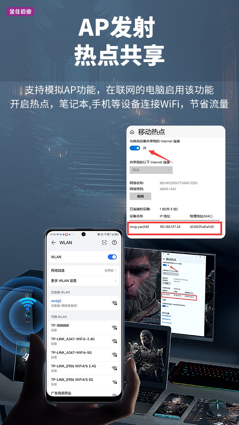 連接臺式機(jī)、筆計本、平板等網(wǎng)絡(luò)接收設(shè)備