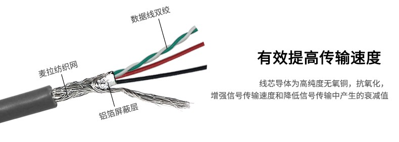 2.鍍錫無氧銅線芯,數(shù)據(jù)線對(duì)絞,信號(hào)傳輸更穩(wěn)定