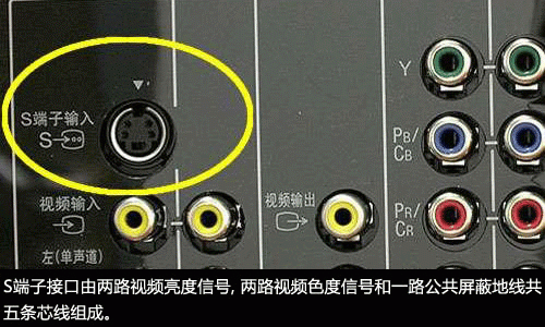 S端子通常有五芯接口,由兩路視頻亮度信號、兩路視頻色度信號和一路公共屏蔽地線共五條芯線組成(實際上還有與其配套的亮度、色度分離器)。從其結(jié)構(gòu)不難看出,它是用來將亮度和色度分離輸出的設(shè)備。