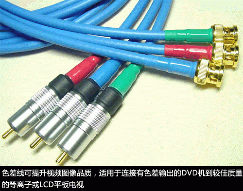 無氧銅色差線,比S端子線線質(zhì)量更好的視頻線,傳輸模擬信號,目前應(yīng)該是模擬信號中最好的視頻線,新出的DVD機,高端電視,以及家用投影機都會帶有這種接口。
