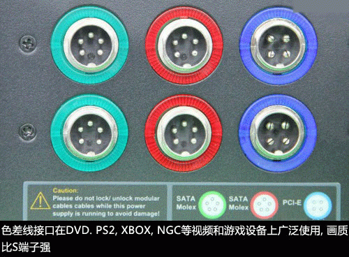 色差分量接口這種接口在DVD、PS2、XBOX、NGC等視頻和游戲設(shè)備上都可以使用,畫質(zhì)方面要強過S端子。色差分為逐行和隔行顯示,一般來說分量接口上面都會有幾個字母來表示逐行和隔行的。用YCbCr表示的是隔行,用YPbPr表示則是逐行,如果電視只有YCbCr分量端子的話,則說明電視不能支持逐行分量,而用YPbPr分量端子的話,便說明支持逐行和隔行2種分量了。