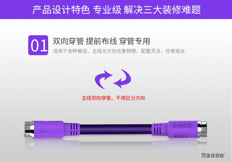 當(dāng)工人在施工的時(shí)候,提前預(yù)埋布線的時(shí)候,不用在考慮線的方向到底對不對,完全沒有這個(gè)擔(dān)心,金佳佰業(yè)的HDMI雙向穿管線兩端可以隨時(shí)更換對應(yīng)的接頭。