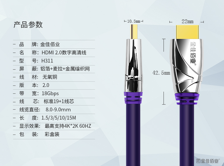 HDMI高清線的市場(chǎng)前景,讓很多商家都嗅到了其中的肉味,紛紛涌入其中,市場(chǎng)上的HDMI高清線質(zhì)量也是參差不齊,如果不懂怎么挑選HDMI高清線,很有可能會(huì)出現(xiàn)既沒有享受到高清視頻的美好體驗(yàn),還破壞了電視機(jī)的HDMI傳輸接口這種情況,今天金佳佰業(yè)就來給大家講解一下怎么挑選一根優(yōu)質(zhì)的HDMI高清線。
