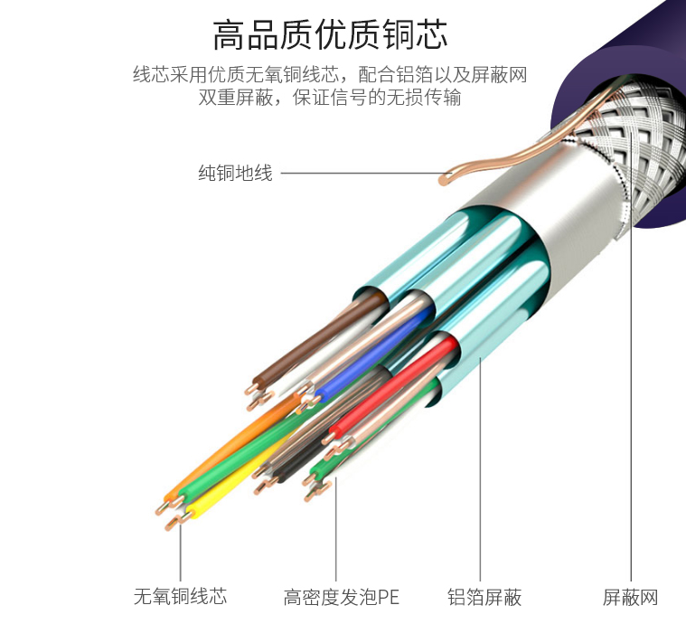 HDMI線的傳輸能力是其本身最重要的性能。普通銅材質(zhì)HDMI線會(huì)受到長(zhǎng)度和傳輸能力的限制,為了保證傳輸穩(wěn)定,目前市場(chǎng)上有光纖材質(zhì)的HDMI線材,但是價(jià)格昂貴,除非專業(yè)性需求的用戶可以考慮。現(xiàn)在可以采用19根34AWG線規(guī)加多股鍍錫銅芯來編織,不用擔(dān)心長(zhǎng)度帶來的衰減和外界的干擾,解決長(zhǎng)距離傳輸。