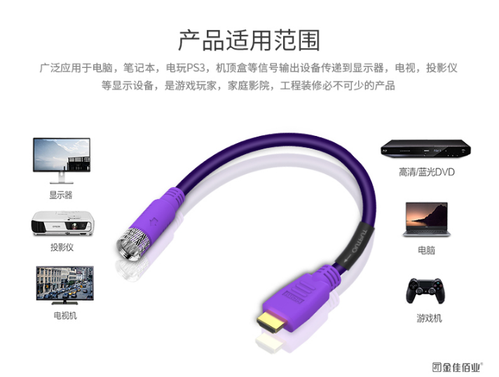 以上就是關(guān)于筆記本電腦如何用HDMI高清線連接電視機(jī)就介紹到這,基于家庭的布線需要,選擇一款萬能實(shí)用的HDMI高清線顯得尤為重要,HDMI高清線可以最大化節(jié)約空間,并有效避免線路雜亂,幾乎能滿足所有的情況,增加了單品的使用率,非常適合掛式液晶電視使用。如果想要了解更多關(guān)于USB線相關(guān)信息,可來電咨詢金佳佰業(yè)在線客服。