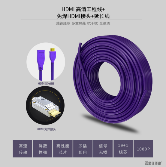 金佳佰業(yè)HDMI高清線能夠保證信號穩(wěn)定運行,兼容性強。不僅如此,它在布線時也是非常方便的。這樣可以達到節(jié)約成本,提高施工效率的效果,使現(xiàn)場整潔度都能得到極大的提升。HDMI高清線在教育系統(tǒng)中的多媒體教室、投影機、投影幕、觸摸屏等地方經(jīng)常會使用到。