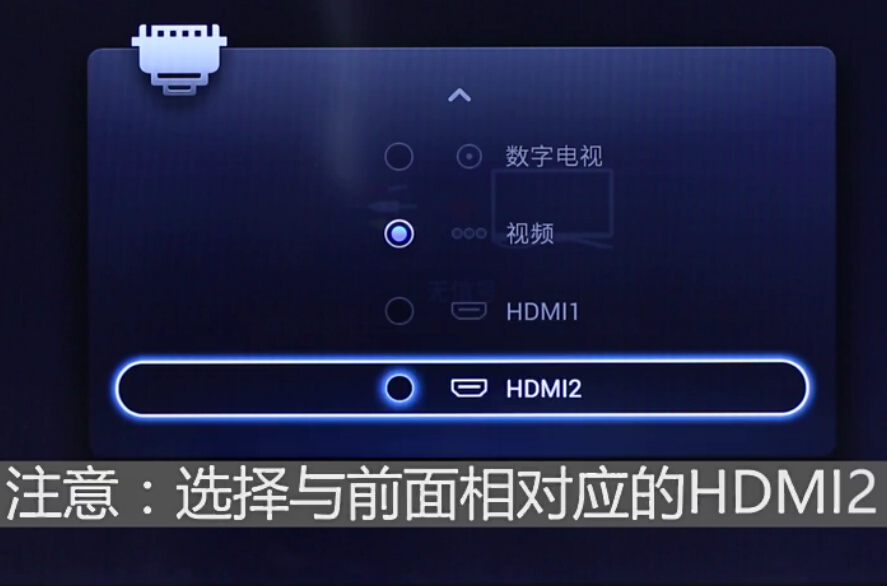 上面說到的看看插入的是幾號口就是為了這一步準備的,比如咱們插入的是2號口,那我們在設置的,對應的就是HDMI2,確定之后,電視屏幕也就成為了電腦的兩一個屏幕了。