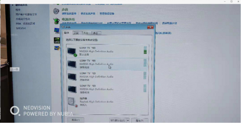 3、在音頻管理見面點(diǎn)擊“播放”,選擇帶有HDMI標(biāo)識(shí)的設(shè)備為默認(rèn)設(shè)備。這樣就能正常把電腦聲音通過HDMI輸出到音響;