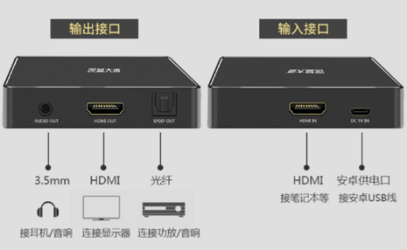 4、如果音響設(shè)備有光纖接口,沒有HDMI接口;可以使用深藍(lán)大道的音視頻分離器連接;