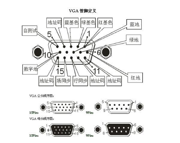VGA線有不同的針腳,比如15針腳和9針腳,相信很多朋友都會比較好奇這些針腳到底都負責哪些事宜?下面金佳佰業(yè)用一張圖來給大家解答。