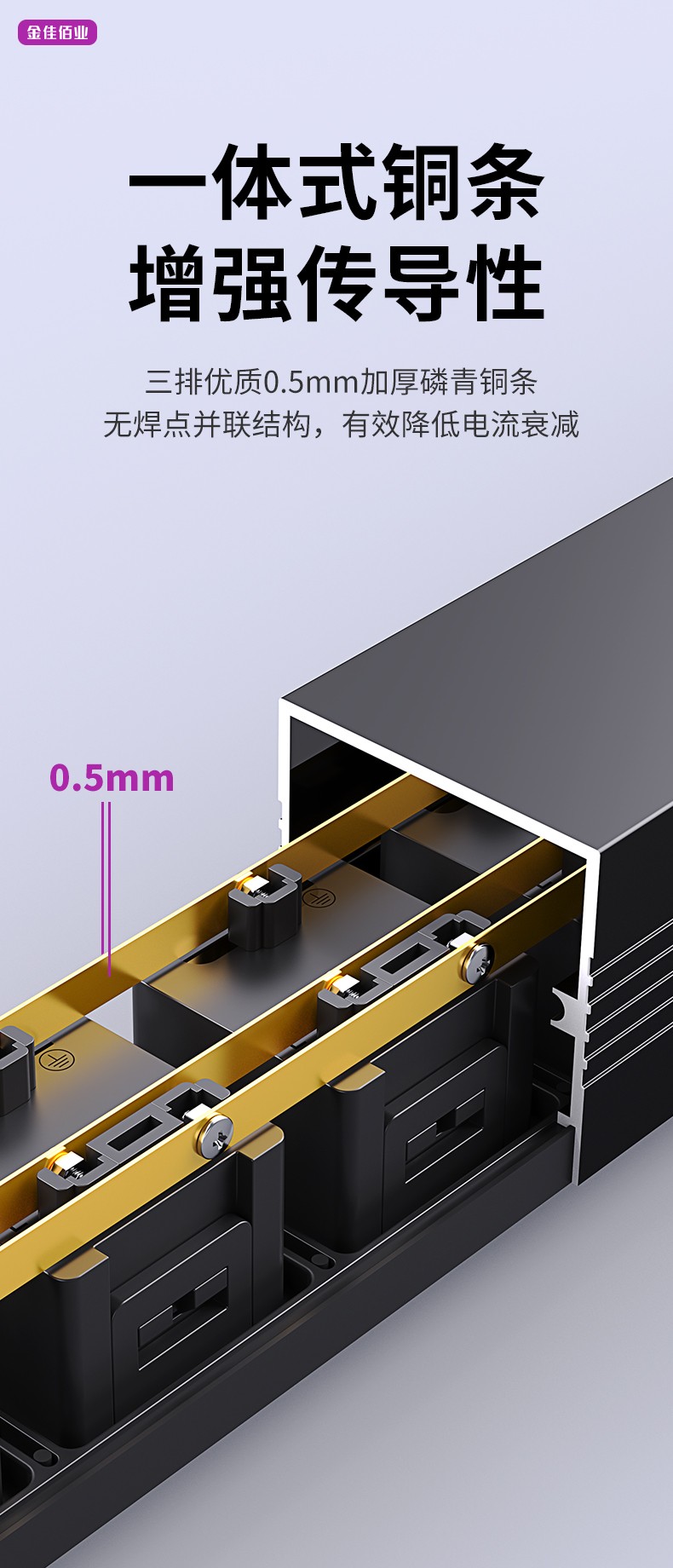 3. 一體式導(dǎo)電銅條,無(wú)焊點(diǎn),高效傳導(dǎo)