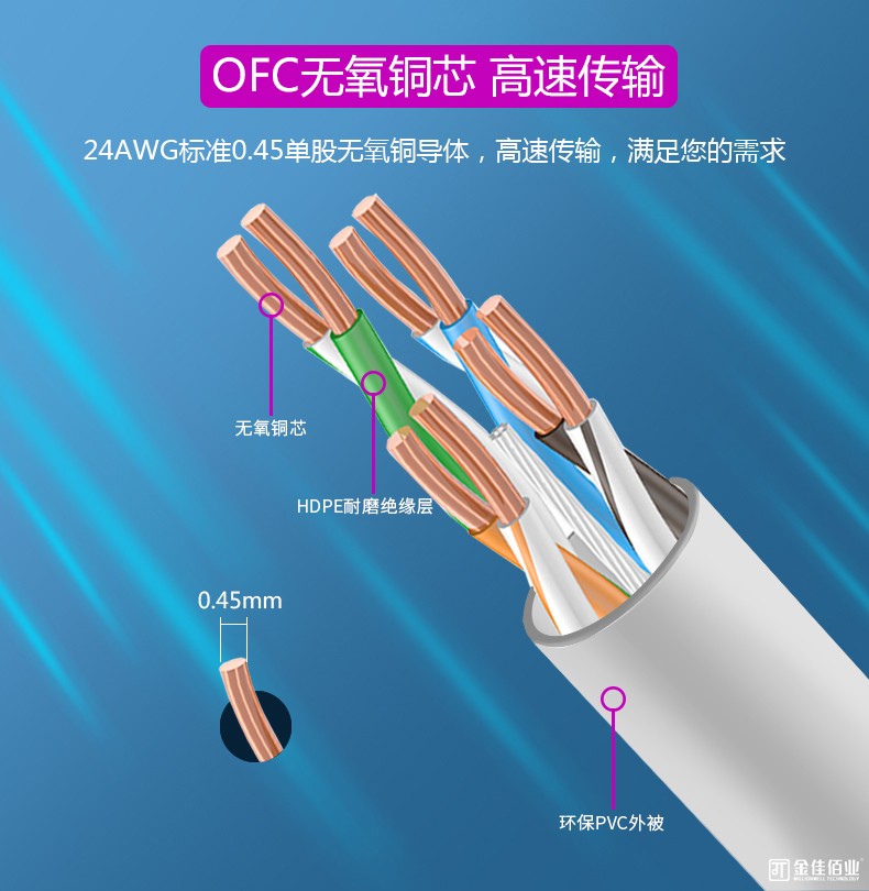 ?1. 8根0.45mm無(wú)氧銅導(dǎo)體,信號(hào)傳輸快 、使用壽命長(zhǎng)