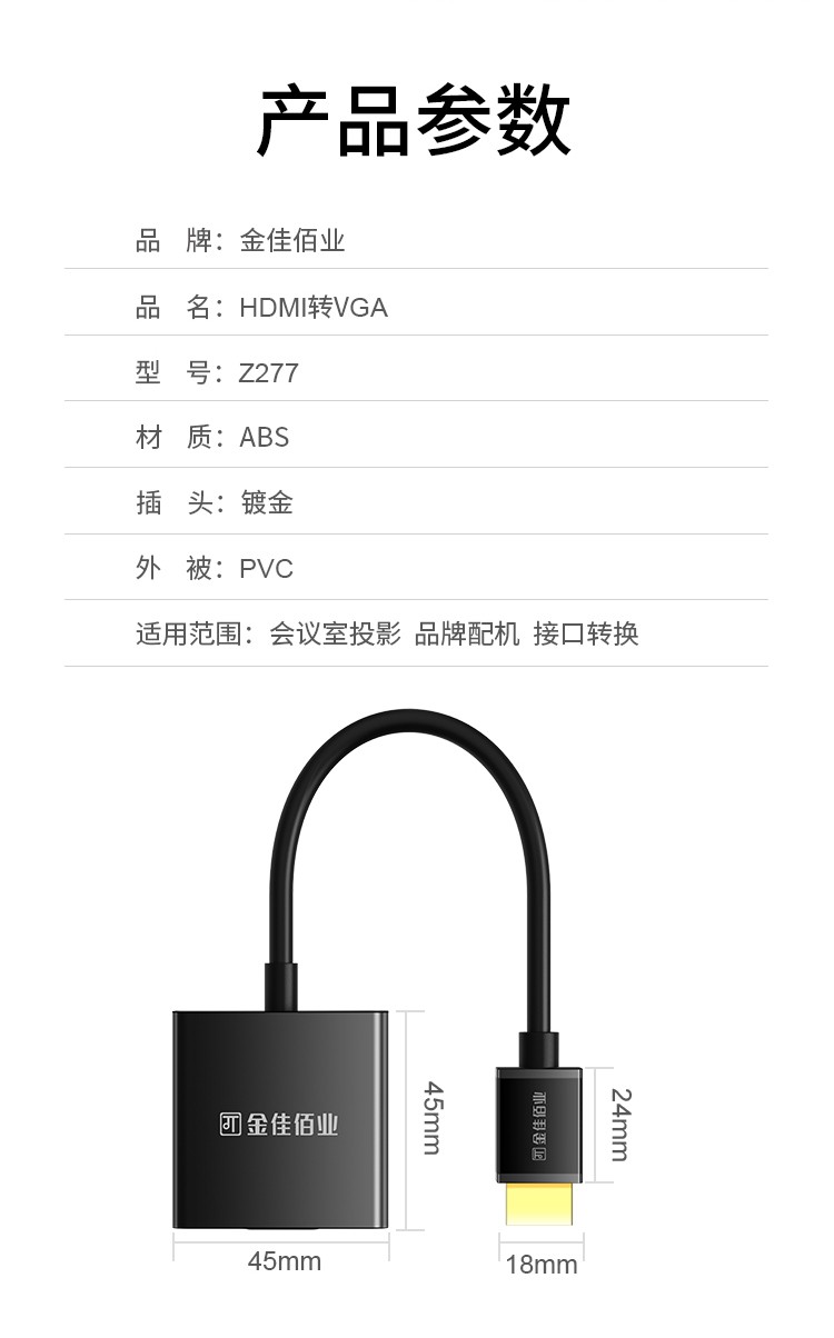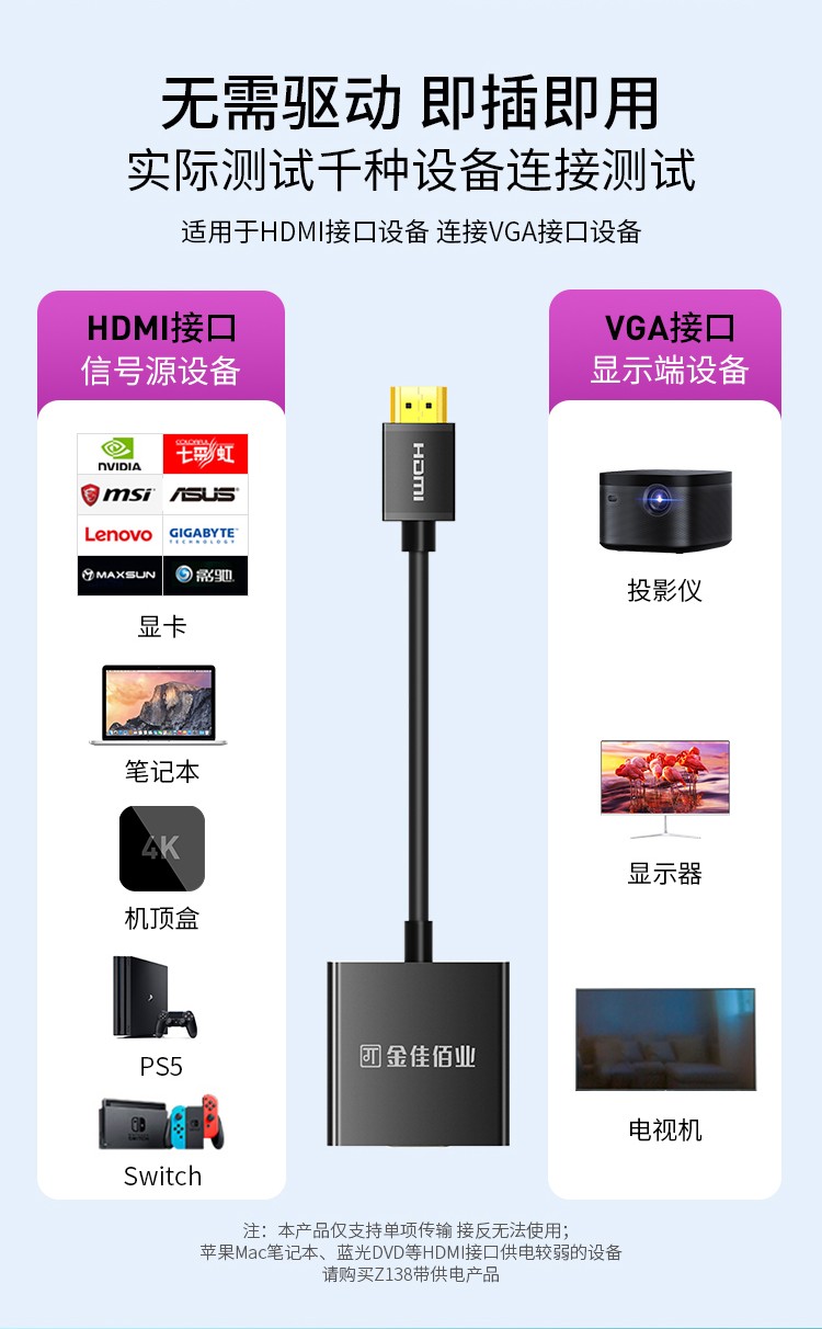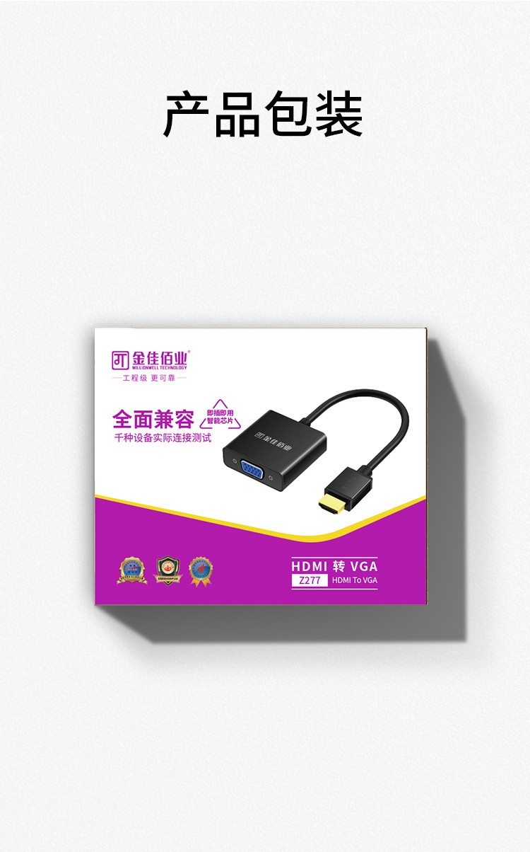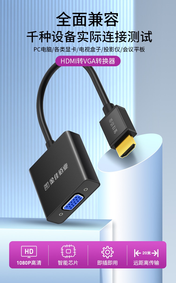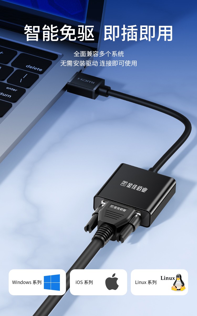 1. HDMI轉(zhuǎn)VGA不帶音頻不帶供電