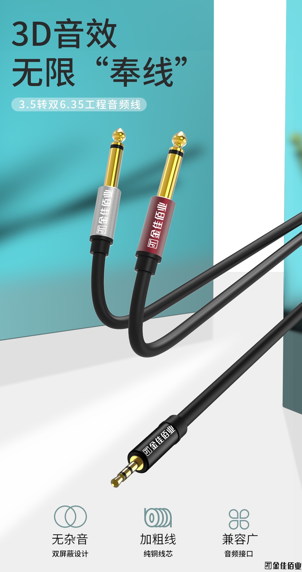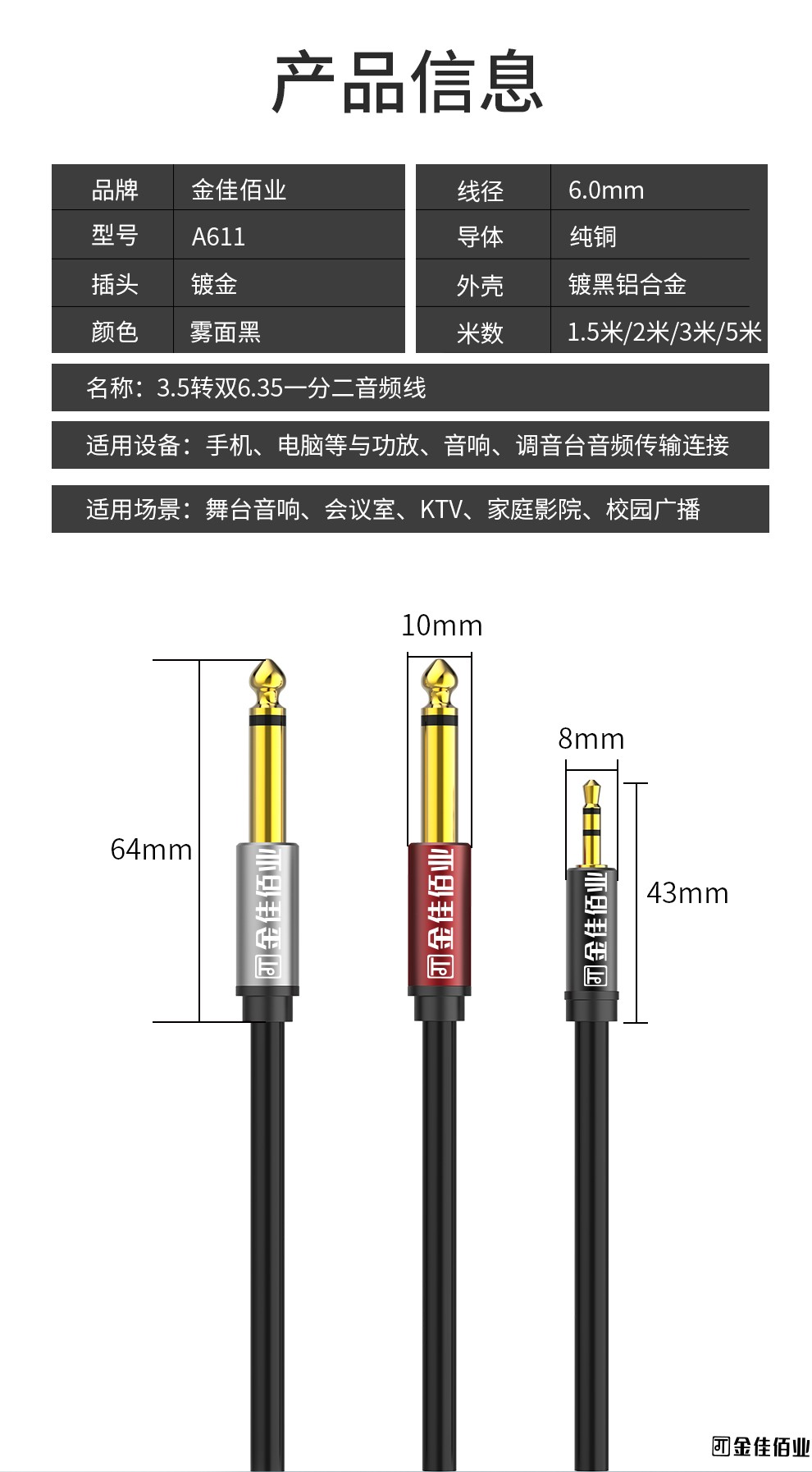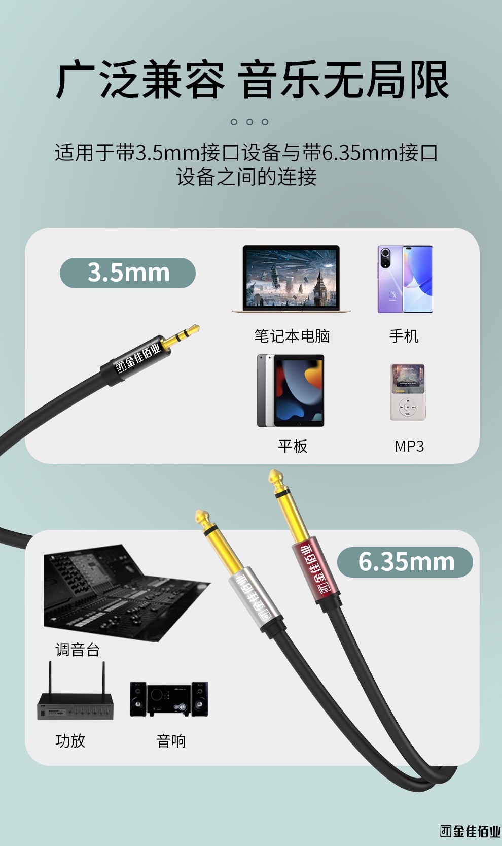 5. 適用于帶3.5mm接口設備與帶雙6.35mm接口設備之間連接