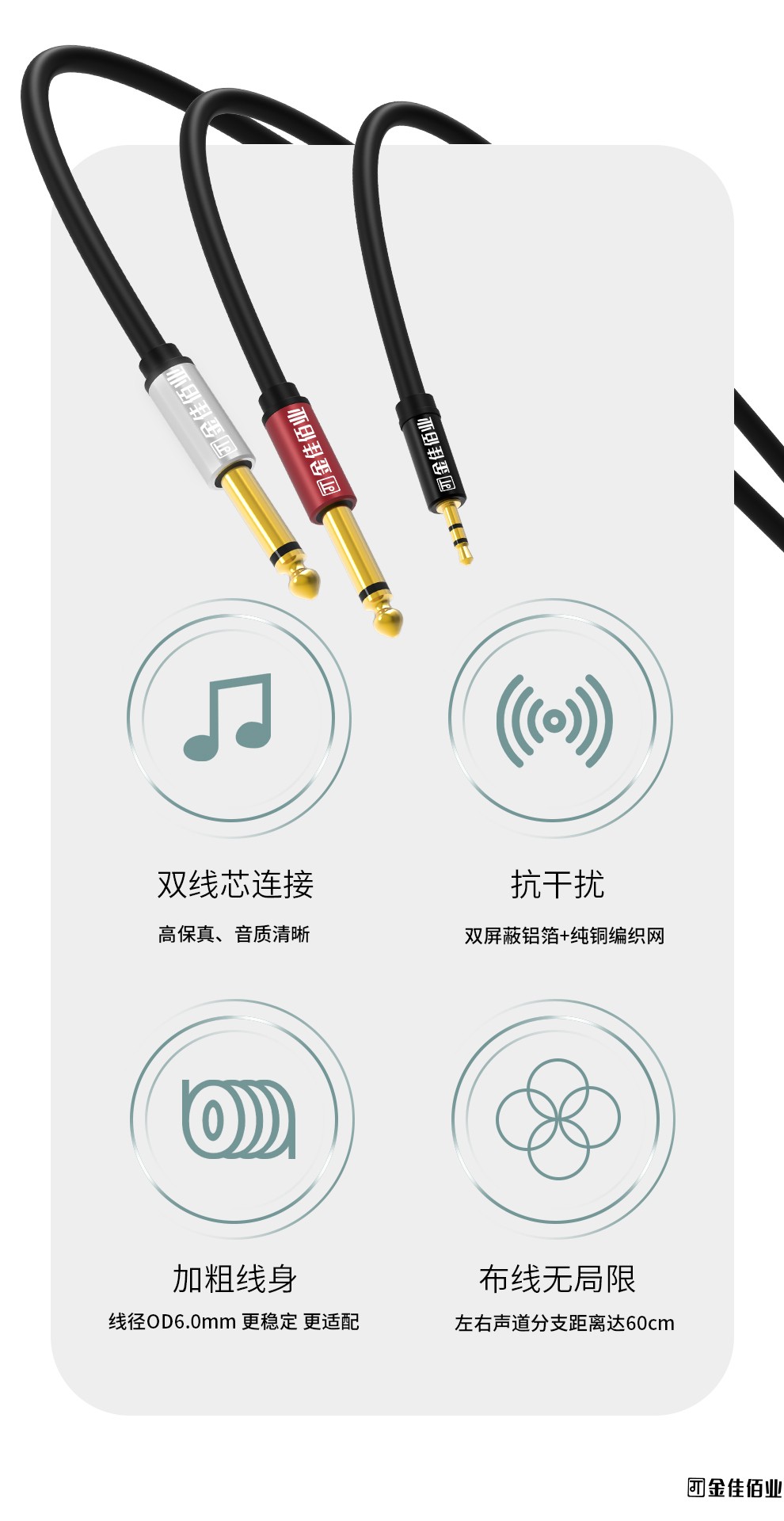 3. 插拔順暢 不卡殼,階梯式接頭,左右聲道分線0.6米