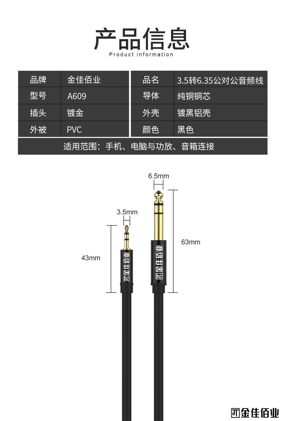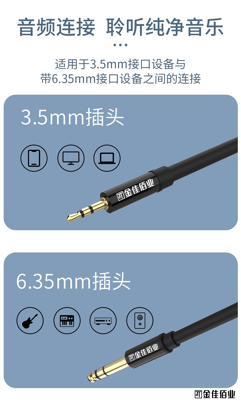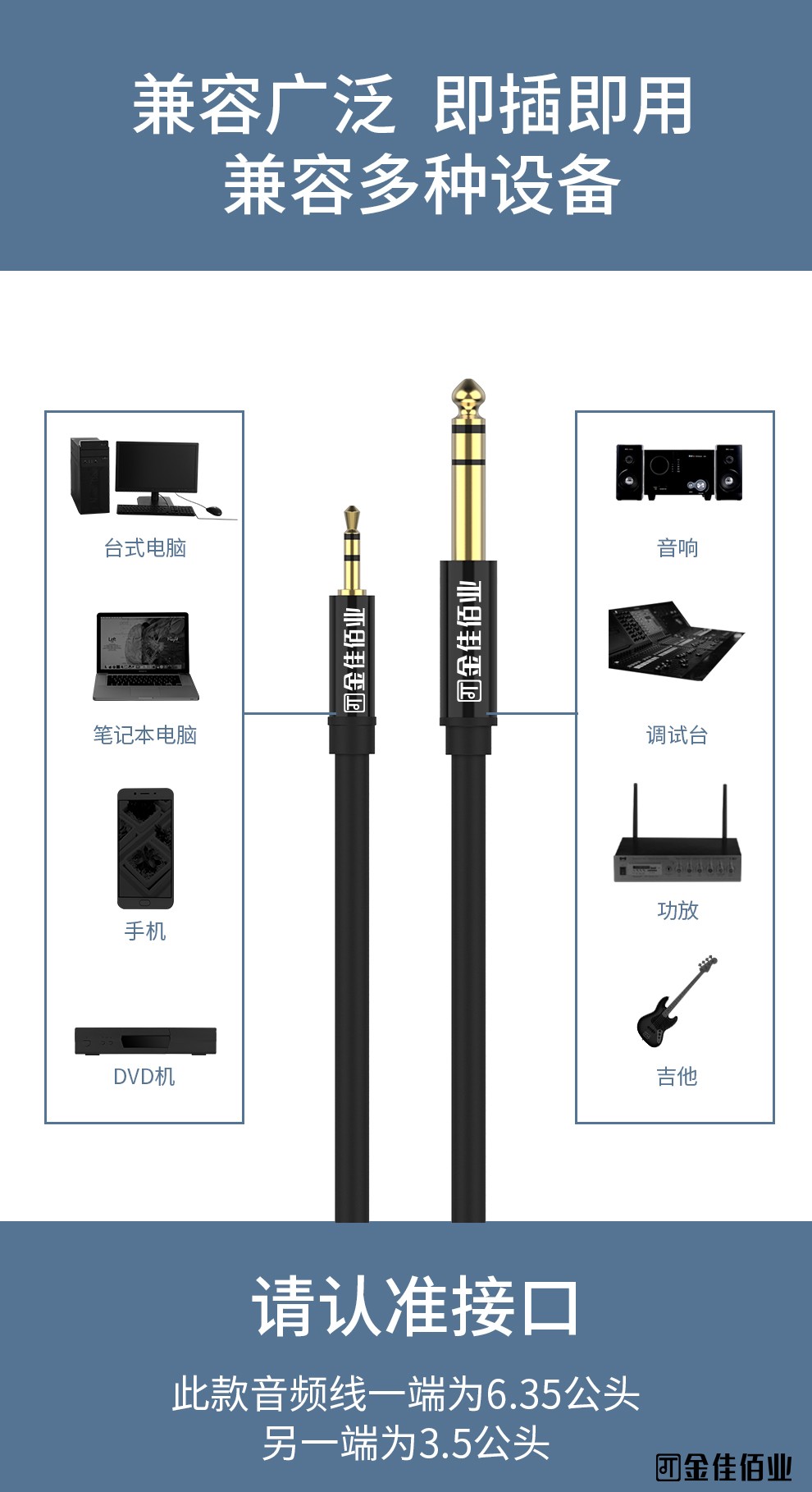 4. 即插即用,兼容廣泛,適用于帶3.5mm接口設備與帶6.35接口設備之間音頻傳輸