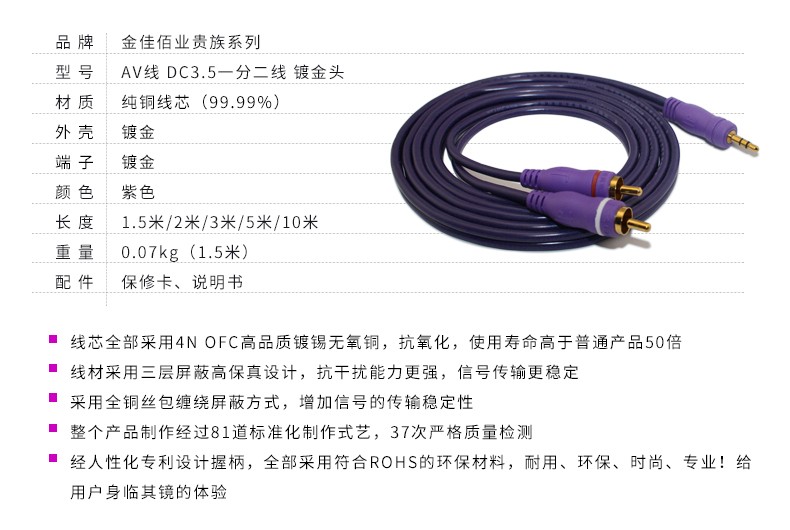 ?1. 鍍金插頭、保真音質(zhì)