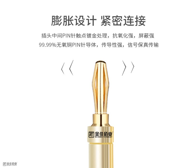 2. 99.99%無氧銅PIN針導體,傳導性強免焊接,高保真信號,膨脹設計,結構更穩(wěn)固,抗氧化,耐插拔