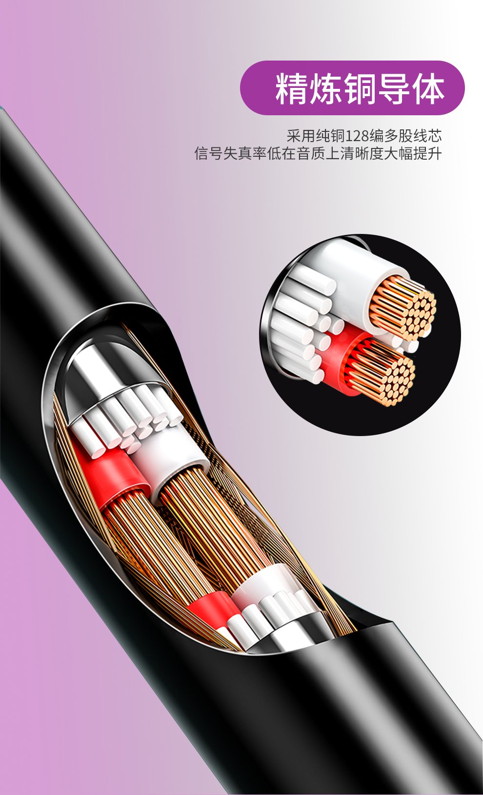 5. 多股銅芯,低阻抗衰減小,傳輸不失真
